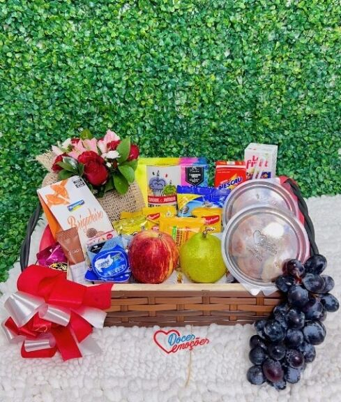 01- Cesta quadrada decorada com laços e fitas;