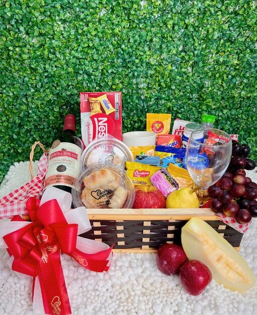 Nossas cestas podem incluir frutas frescas, pães, queijos, iogurtes, doces e bebidas como café ou chá. Por isso, você pode montar uma cesta que seja perfeita para quem será presenteado.